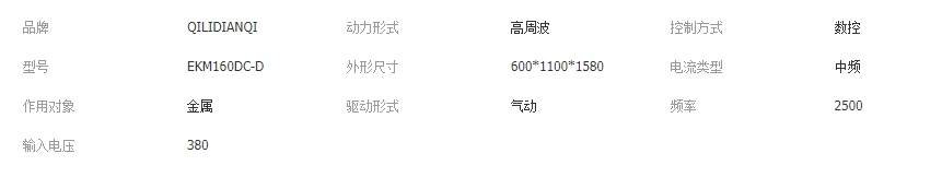 6.節(jié)能:三相電源輸入,整流逆變后中頻1000Hz輸出,工作頻率高,變壓器損耗小,節(jié)能效果明顯。